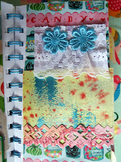 Poistin ensiksi osan lehtiä ja aloin sitten sovitella kuvia,tekstejä sekä atc-kortteja.